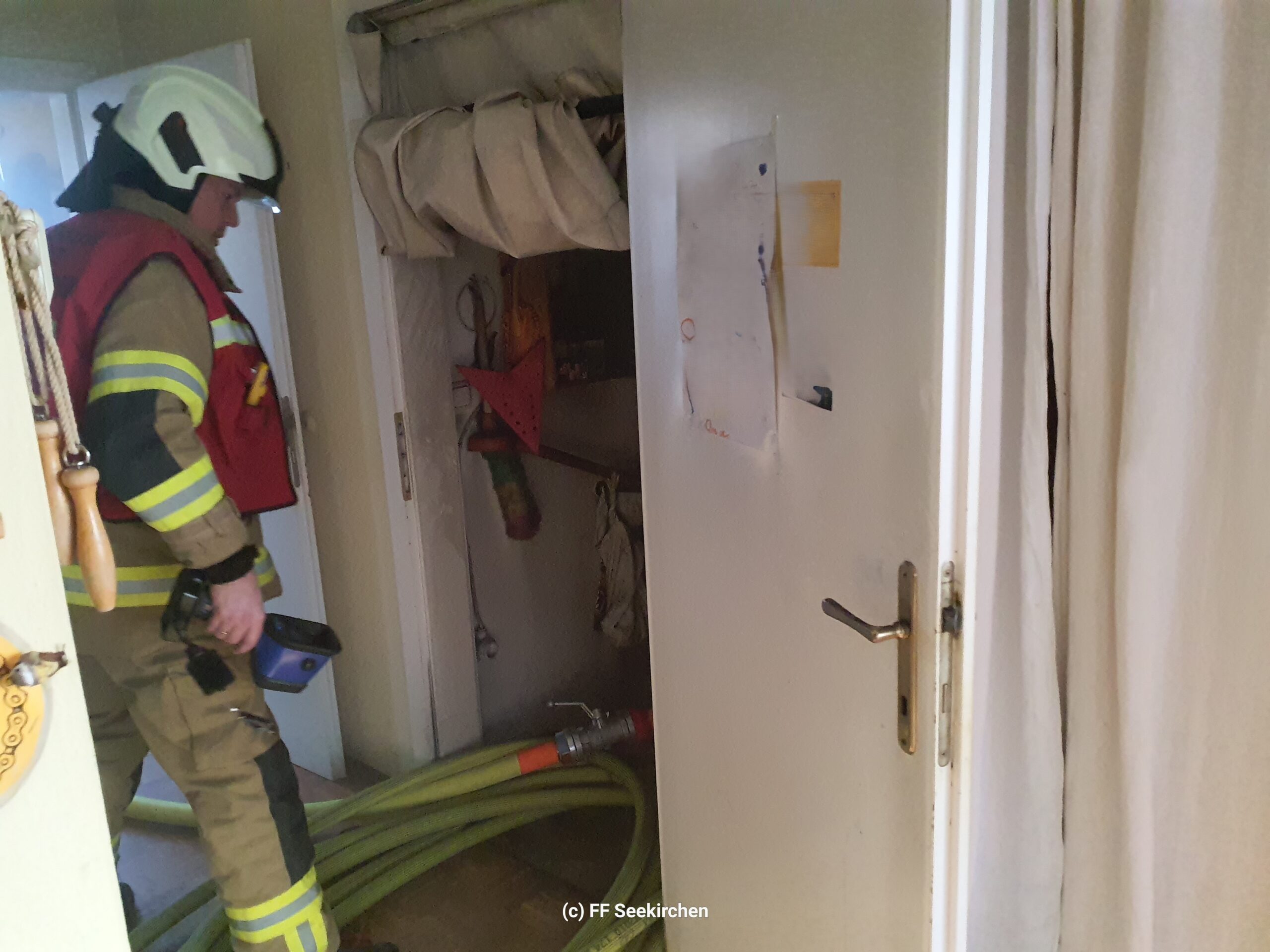 Der Bewohner hat, wie es sein sollte, die Kellertüre geschlossen, somit konnte eine weitere Rauchverschleppung in den Rest des Gebäudes minimiert werden.