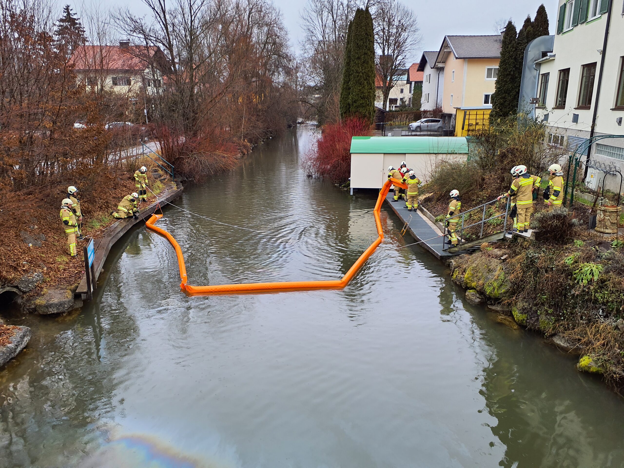 Um 13:32 wurde die Hauptwache mit dem Einsatzstichwort 'Öl auf der Fischach' alarmiert.