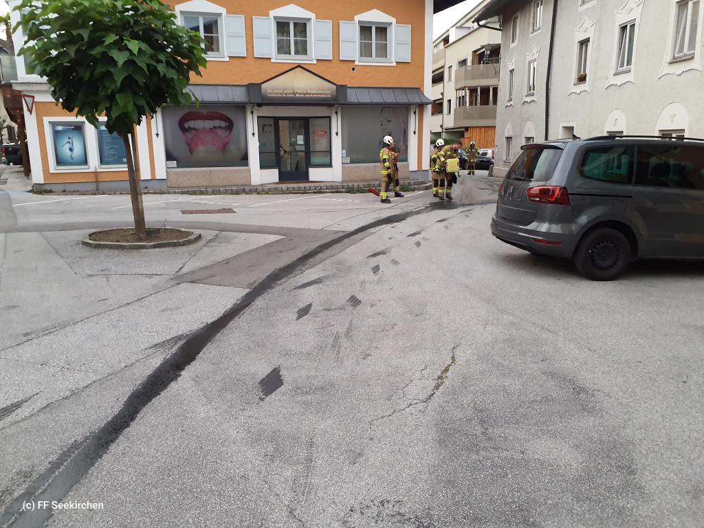 Die Feuerwehr Seekirchen wurde um 17:49 zu einer Ölspur in die Max-Gandolf-Straße alarmiert.