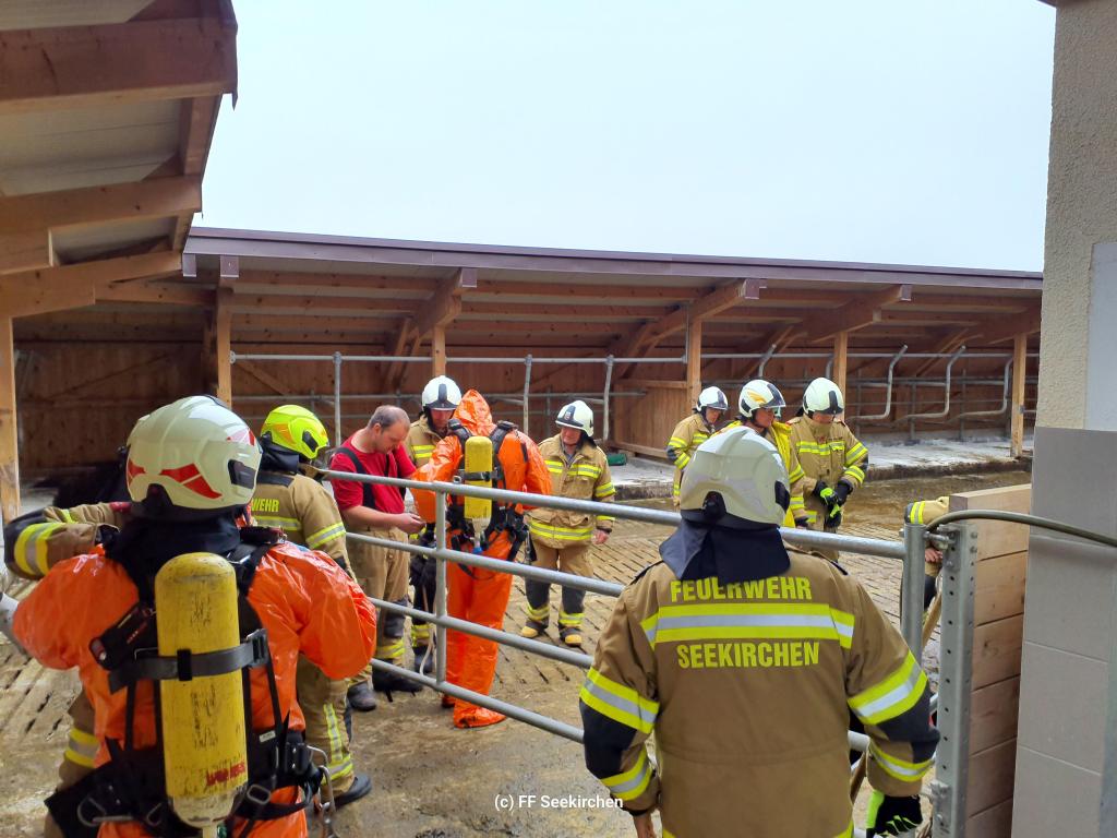 Der Löschzug Wirthenstätten und die Hauptwache Seekirchen wurden um 10.38 Uhr zu einer Tierrettung (Kalb in Güllegrube) allarmiert.