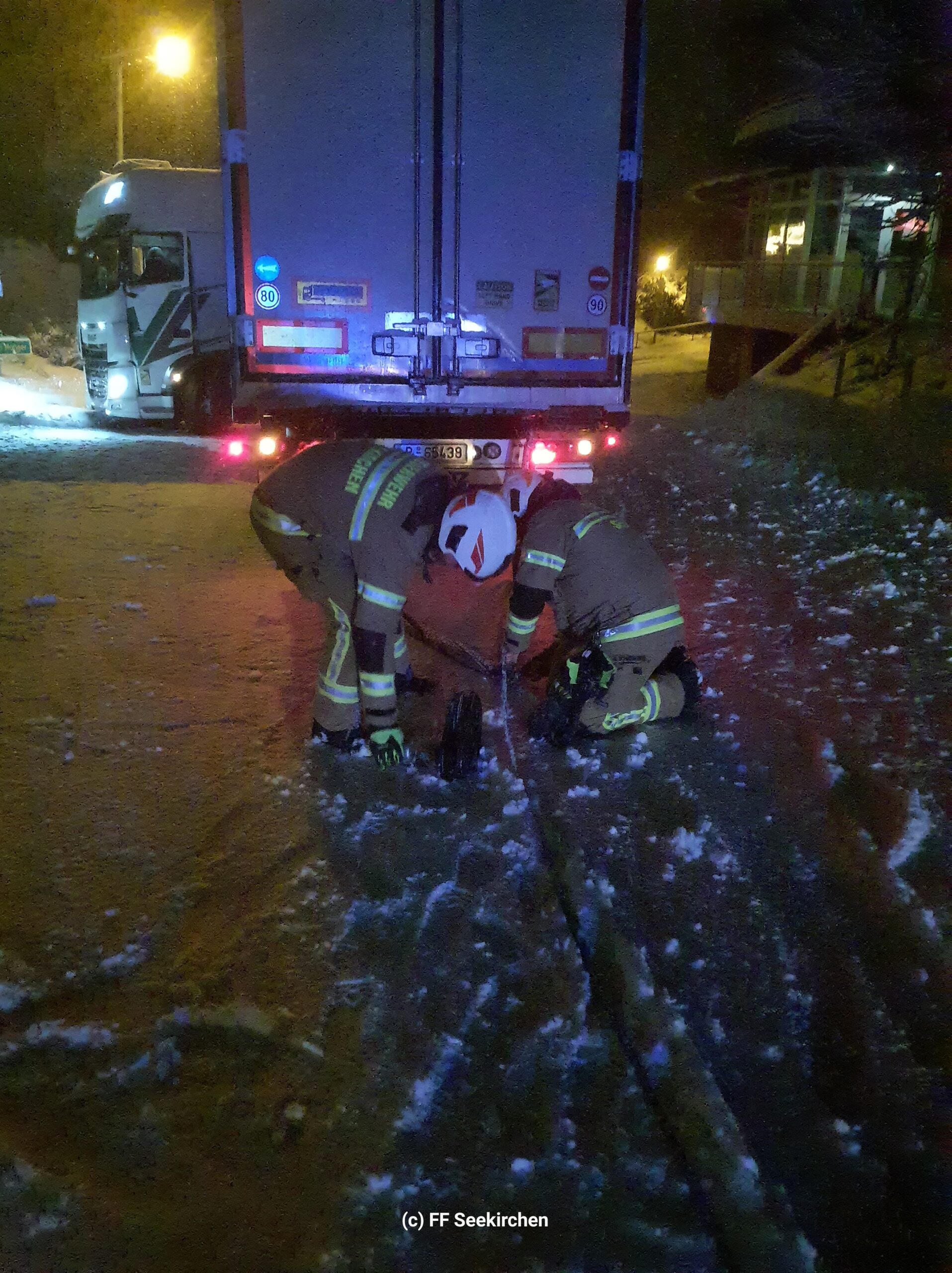 Die Feuerwehr Seekirchen wurde um 22:31 Uhr zur Bergung eines Sattelzugfahrzeugs gerufen.