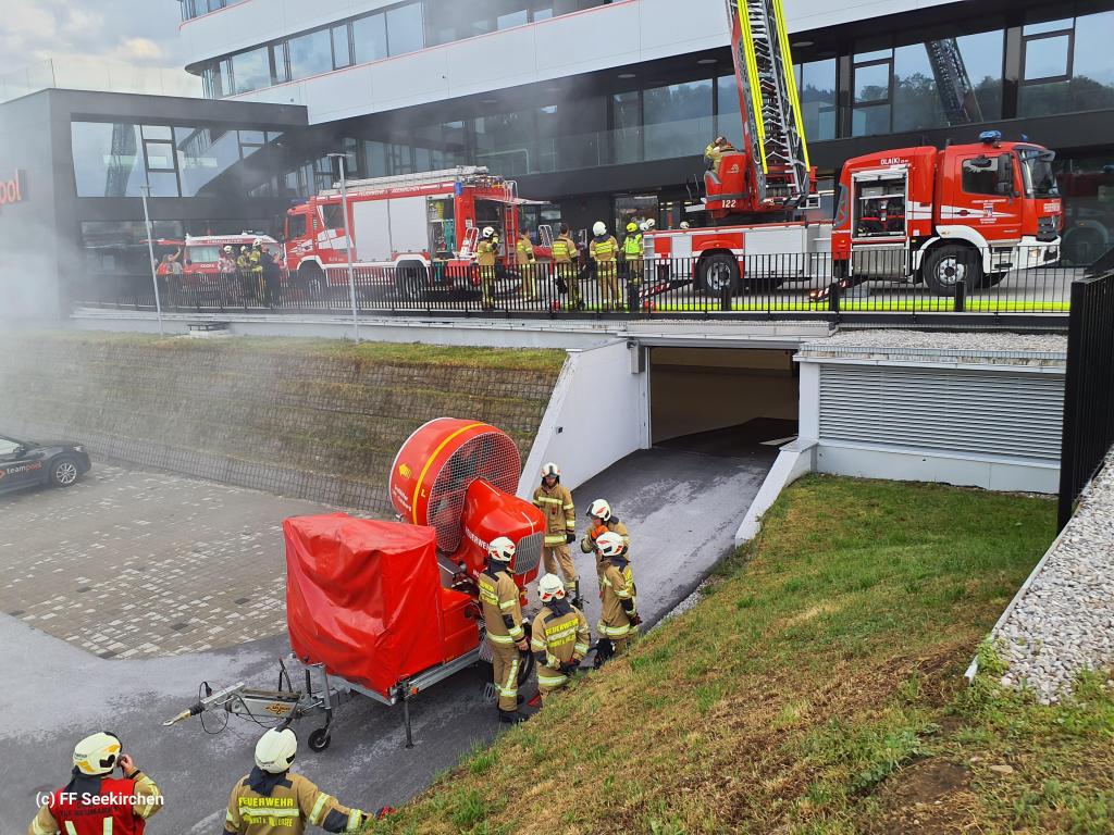 Am 23. Juni 2025 stand für die Feuerwehr Seekirchen eine Gesamtübung auf dem Plan. Das angenommene Szenario war ein PKW-Brand in der Tiefgarage der Firma Teampool mit mehreren vermissten Personen.